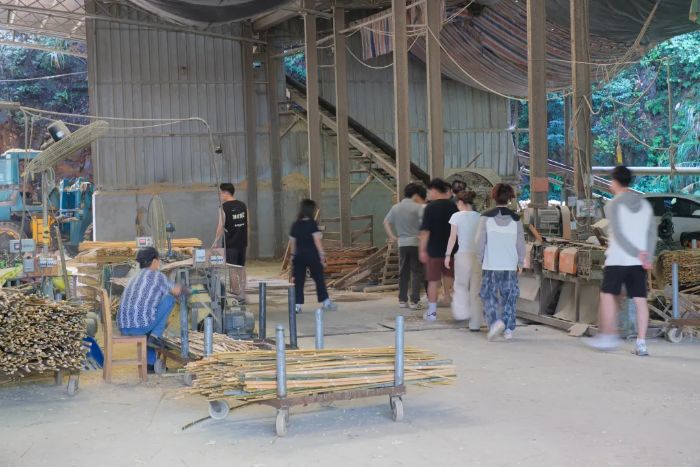 实践团深入龙潭镇竹制品加工场,观摩加工车间。原本普通的毛竹在这里经过切割、打磨等工序,被高效加工成筷子、竹签等畅销产品。实践团对渌口区龙潭镇龙潭村党委书记刘必武进行了采访,了解到该产业在带动村民增收、壮大集体经济、改善民生福祉等方面的起到了重大作用。