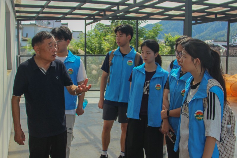 图为戴根盛师傅向实践队员讲述改进制伞工艺的历程(供图:施邵鹏)
