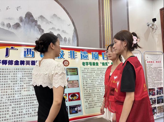 图为成员向非遗传承人了解非遗美食的发展历史。吴敏松供图