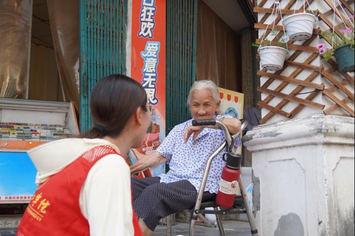 图为队员与骑楼街居民闲谈,细数骑楼街里的日常与过往。吴敏松供图