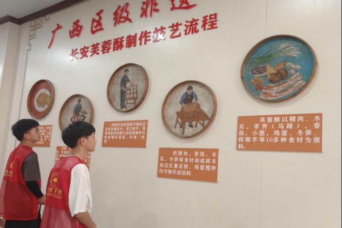 图为队员了解长安芙蓉酥的制作工艺,认真聆听相关介绍。吴敏松供图