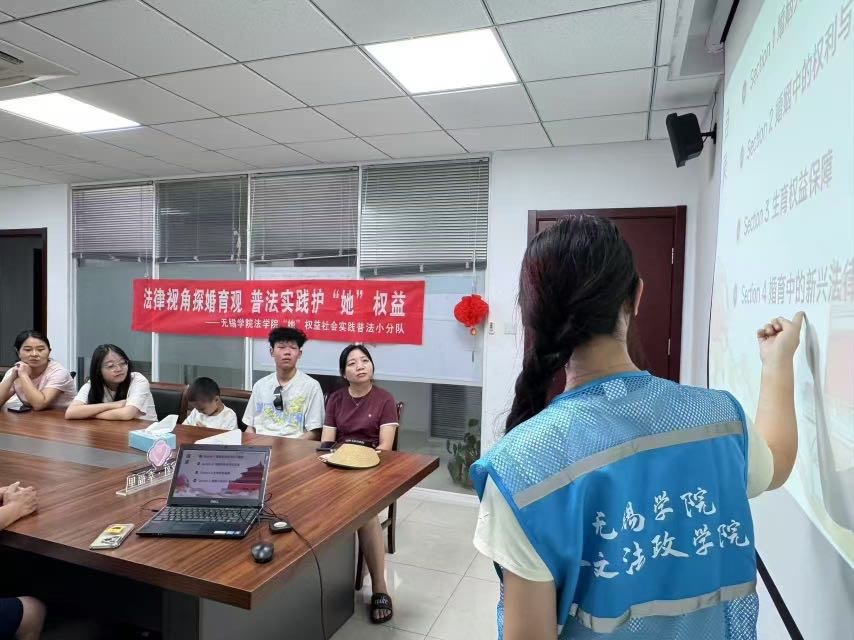 为聚焦当代青年婚育困惑,引导青年树立理性平等的新型婚育观念,2025年暑假期间,无锡学院“她”权益社会实践普法小分队围绕“法律视角下青年婚育观研究”主题,立足青年群体实际需求,以法律赋能为核心,将政策导向与实践探索相结合,先后深入无锡市妇联、苏州苏相律师事务所、江苏众勋律师事务所、苏州市国香园社区、圆融商场CP心动研究所及无锡市三阳广场等地开展活动,通过系统调研、普法宣传等举措,力求破除青年婚育焦虑,为解决当代青年婚育困境贡献力量。
