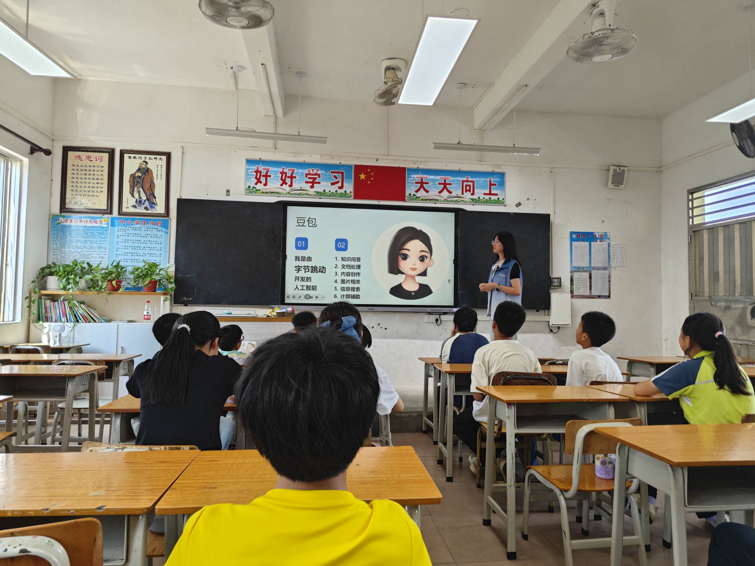 下午的课程围绕未来科技启蒙展开,构建起“认识数字人-AI互动体验-科技共创实践”三位一体的课程架构,创新设计了两大特色环节:首先,通过深入解析数字人技术,并引导学生与豆包AI安全提问、创作、学习等交互活动,为学生奠定对前沿科技的认知基础;其次,重点打造“数字人代言家乡”实践场景,鼓励学生综合运用图片、语音、动画等技术手段,创作家乡宣传短片或互动程序。