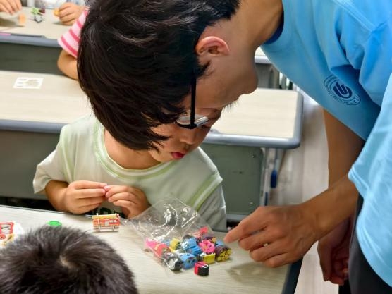 “我的小蚂蚁在公园遇到蝴蝶,它们一起清理垃圾...”普通话活动环节,孩子们手持昆虫图卡创编故事。志愿者将传统故事接龙升级为生态主题创作,每组分到绘有蜜蜂、瓢虫等本土昆虫的卡片。“用卡片上的形象编故事”的要求激发着想象力,孩子们用普通话描述昆虫伙伴保护自然的冒险。在这个充满创意与活力的活动中,我们巧妙地将环保理念与语言训练深度融合,让孩子们在动手与动脑的奇妙旅程中,收获知识与快乐,同时培养环保意识与创造力。有的孩子讲述了小蚂蚁与蝴蝶一起清理垃圾的冒险,有的描绘了昆虫们在森林中举办音乐会的欢乐场景。孩子们稚嫩的讲述赢得了阵阵掌声,不仅锻炼了语言表达能力,还潜移默化地接受了环保理念。活动结束时,孩子们收到了小橡皮作为奖励,脸上洋溢着满足的笑容。这次活动通过手工制作与故事创编,让孩子们在欢乐中收获了知识与环保意识。
