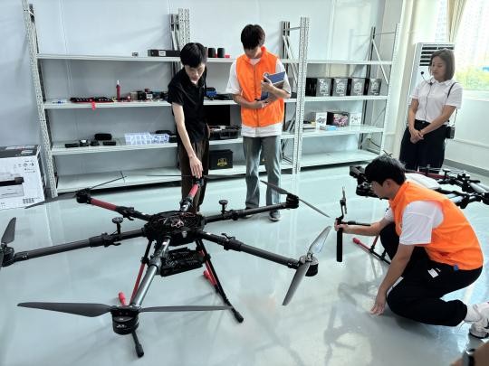 当日下午,调研组转战河源首个低空经济产业园——中创航空有限公司。队员陈奕帆直播演示纵列式双旋翼无人直升机实飞,其50kg大载荷、4小时长航时性能获直播间两千观众刷屏点赞。企业聚焦应急救援、森林消防等民生场景,并与广东工业大学共建产学研基地,打造“教学考证就业”闭环。