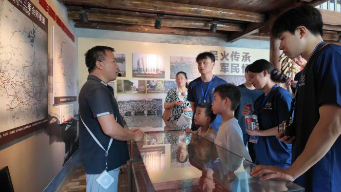 图为团队成员带领孩子们参观新田县红六军团小源会议旧址纪念馆,学习红色文化。