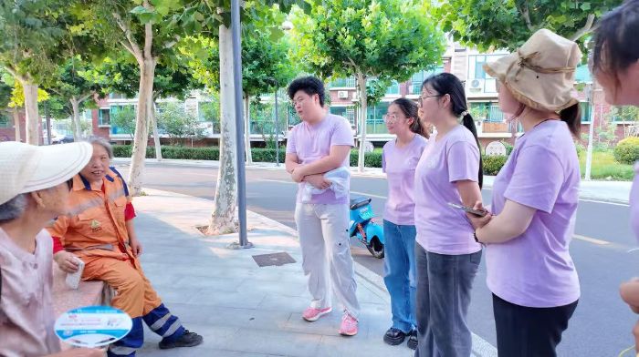 图为团队成员与社区居民讨论肉品腐败相关问题 闫伟鑫 摄
