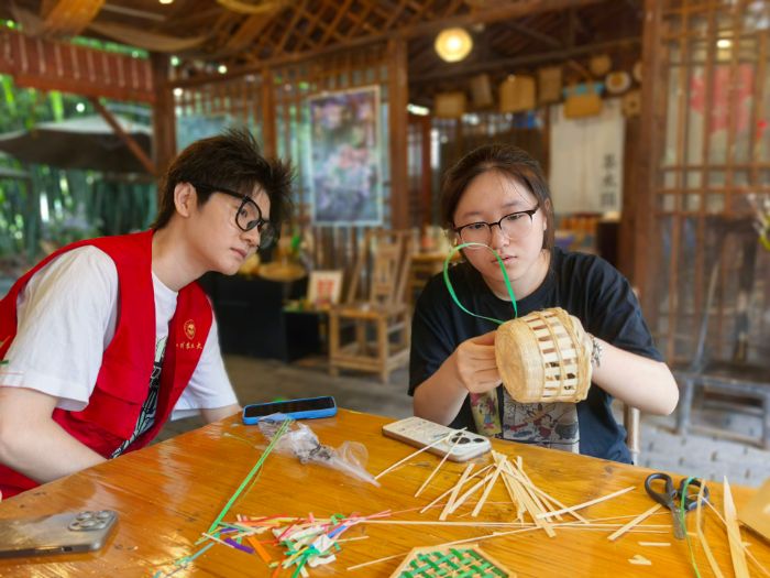 7月18日,四川农业大学林学院“星筠·遗路竹行”社会实践团队深入四川省崇州市道明村,开展以“传承竹编非遗文化”为主题的实践活动。团队旨在通过沉浸式的学习与交流,让更多人了解并传承竹编技艺,助力非遗文化焕发新的活力和生机。在当地村民手把手的讲解与传授下,队员们逐步掌握了竹编基础技法,协作完成了一系列富有文化特色的竹编作品,并在亲身体验编织的过程中,深刻感悟到每一件竹编作品背后蕴含的匠心智慧与艰辛不易。(通讯员 罗娇杨)