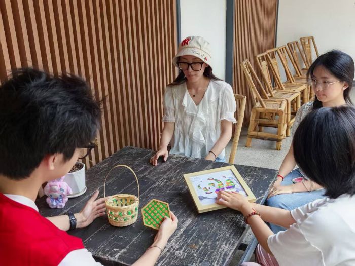图为实践队队员在进行竹编技艺学习后进行讨论与总结。罗娇杨摄