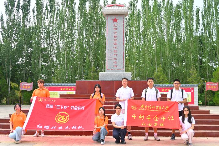 图15兰理工团队与外贸大团队在纪念碑前合影