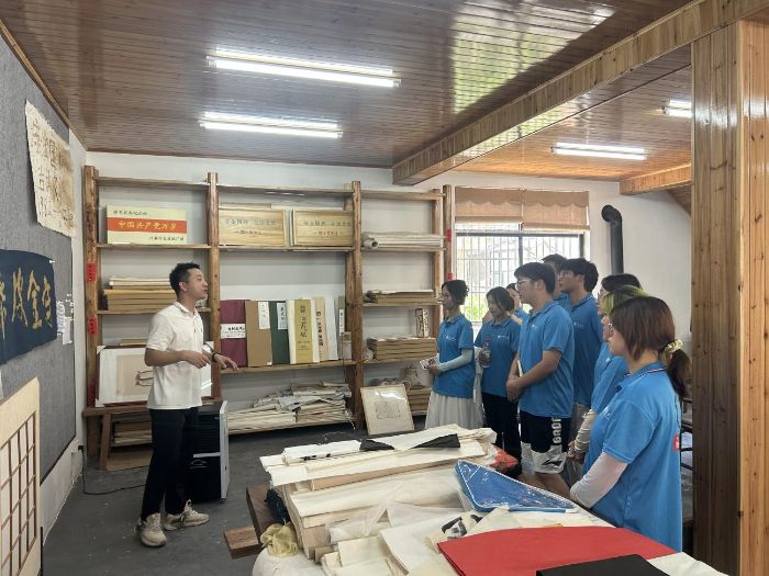 随着对负责人进行深入的采访,实践团队了解到纸厂也在尝试数字化转型,借助电商平台拓展销售渠道,突破地域限制。实践团队针对皮纸产业发展的人才引入、资金支持、政策扶持等问题进行访谈,了解到目前存在专业电商运营人才匮乏、数字化改造资金有限等困境,但当地政府也在出台相关举措,鼓励传统工艺拥抱数字经济。在与负责人的交流采访中,他也向实践团队介绍了当时返乡创业的动机与意图,他希望通过他所学的知识让更多人了解宣城当地的皮纸,也更加了解中国传统的非遗文化技术。