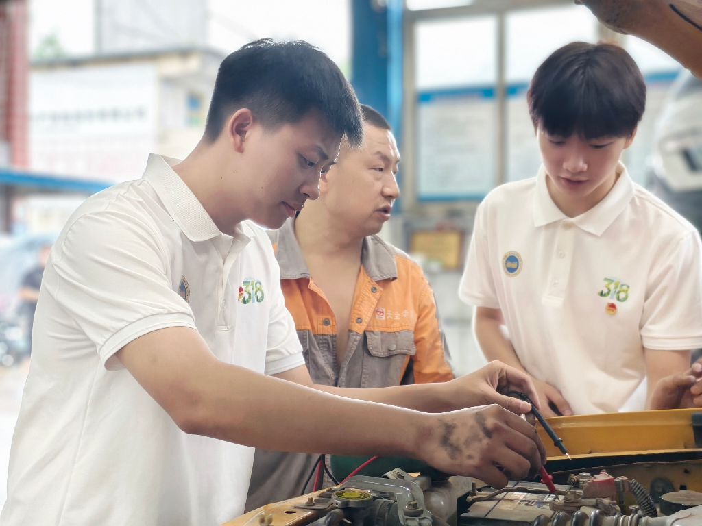 专业护航,助力乡村交通振兴 在雅安天全华通汽修厂,实践团化身 “汽车医生”,开展 “汽修公益护航 318” 专项行动。成员们精准排查发动机异响、刹车失灵等隐患,累计免费检修车辆 80 余台次,同步提供洗车服务 50 余辆次,发放《高原行车安全指南》200 份。