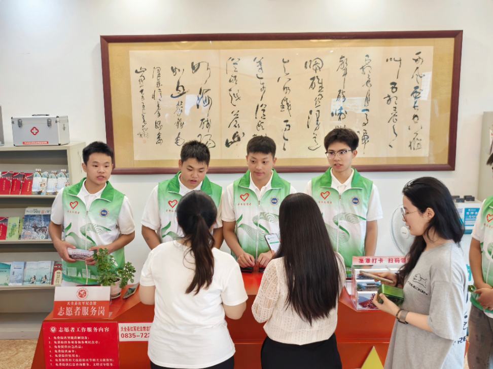 传承基因,激活红色文化能量 走进天全县红军纪念馆,实践团在 “小红军讲解员” 的带领下,重温红军长征过天全的英雄事迹。成员们不仅聆听历史,更穿上绿马甲投身志愿服务:解答游客咨询、协助信息录入、引导参观路线,让红色场馆成为践行 “国家文化数字化战略” 的阵地。