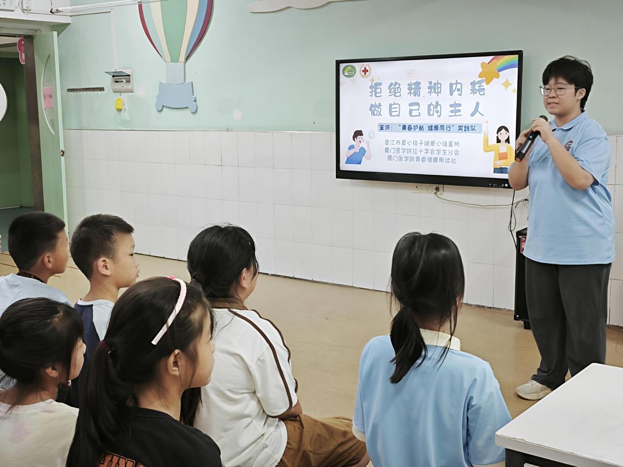 7月9日至11日,厦门医学院红十字会学生分会联合青春健康同伴社组建的“青春护航,健康同行”实践队,走进泉州市晋江市,用专业知识与热忱行动,为当地青少年送上急救技能、禁毒知识、防艾与性侵防护及心理健康教育“大礼包”。队员们在基层实践中厚植信念、增长才干,以实际行动践行社会主义核心价值观与红十字精神,让青春在守护成长的使命中绽放光彩。