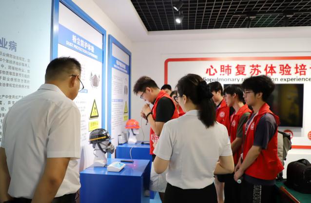 随后刘继伟带领实践团队先后参观了企业科研创新中心、智能化中控平台、特种设备实训基地。在科研创新中心,团队成员聆听了讲解员讲述企业自主研发的专利技术和创新成果,详细了解智慧矿山建设进展;在中控室,操作员为团队成员展示了智能化生产调度系统和"一键启停"远程操控流程;在特种设备实训基地,讲解员为随行成员讲解了企业标准化的技能培训体系。