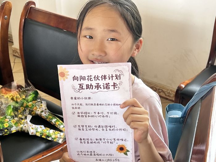 同伴共护同行:从“个体自护”到“群体守护” “向阳花伙伴计划”承诺纸上,11岁孩子的字迹虽带着孩童的稚嫩,笔画间却透着格外的认真。这个曾带领小组完成模拟欺凌化解的孩子,在落笔签名的瞬间,已悄然从“学习者”转变为“践行者”。这样的转变并非个例——当每个孩子都在承诺纸上郑重签下姓名,从“旁观者”到“守护者”的身份蜕变便有了具象的寄托,欺凌行为也随之失去了滋生的土壤。