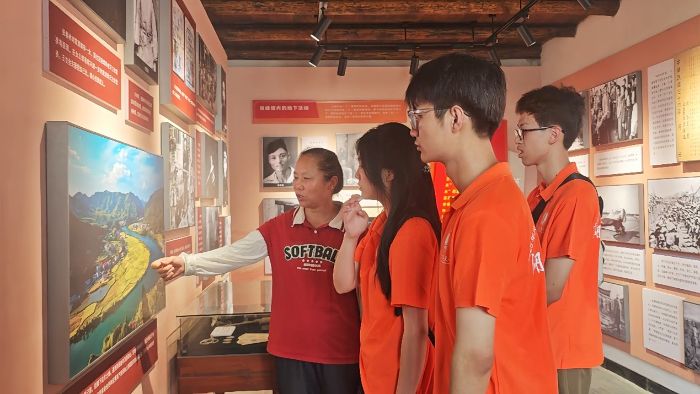 由村干部担任的讲解员眼神一凝上旧墙,便开始滔滔不绝地说了起来。在革命时期,这里是湖南党组织开展重要工作的据点。无数革命先辈在此运筹帷幄、奋勇抗争,为湖南的解放事业洒下热血。现在,这里还有一件件展品,如一张古朴的旧桌,一台老旧的织布机等等。每一件展品背后都藏着动人故事,每一处角落都沉淀着历史的厚重。青砖白瓦之下埋着那个时代先辈们的努力与呐喊,队员们沉浸在厚重的历史中,无一不被先辈们坚定的革命意志和无私奉献的精神所深深触动,良久无法释怀。走进旧址,就像翻开了一本鲜活的革命史书,先辈们的故事让队员们真切感受到了如今幸福生活的来之不易。