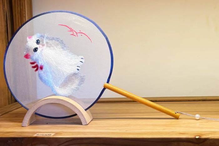 图为融入女书刺绣的文创扇子 杨丽娜摄