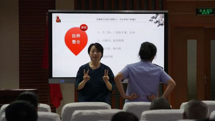 慧心传妙法,畅谈“身心之道” 会议室内,著名中医讲师上官华英以“情志诊察—用心交流—现场体验”为主线,串联起一场生动的健康讲座。她从肝脏、脾胃等民警高发问题的器官入手,结合中医理论提出日常防微杜渐的建议,并现场示范排解压力的动作。民警们与队员、讲师积极互动,上台体验穴位按摩、呼吸调节等技法,会场上洋溢着亲切欢乐的氛围。一位民警感慨:“原来养生可以这么简单,这些方法下班就能用!”