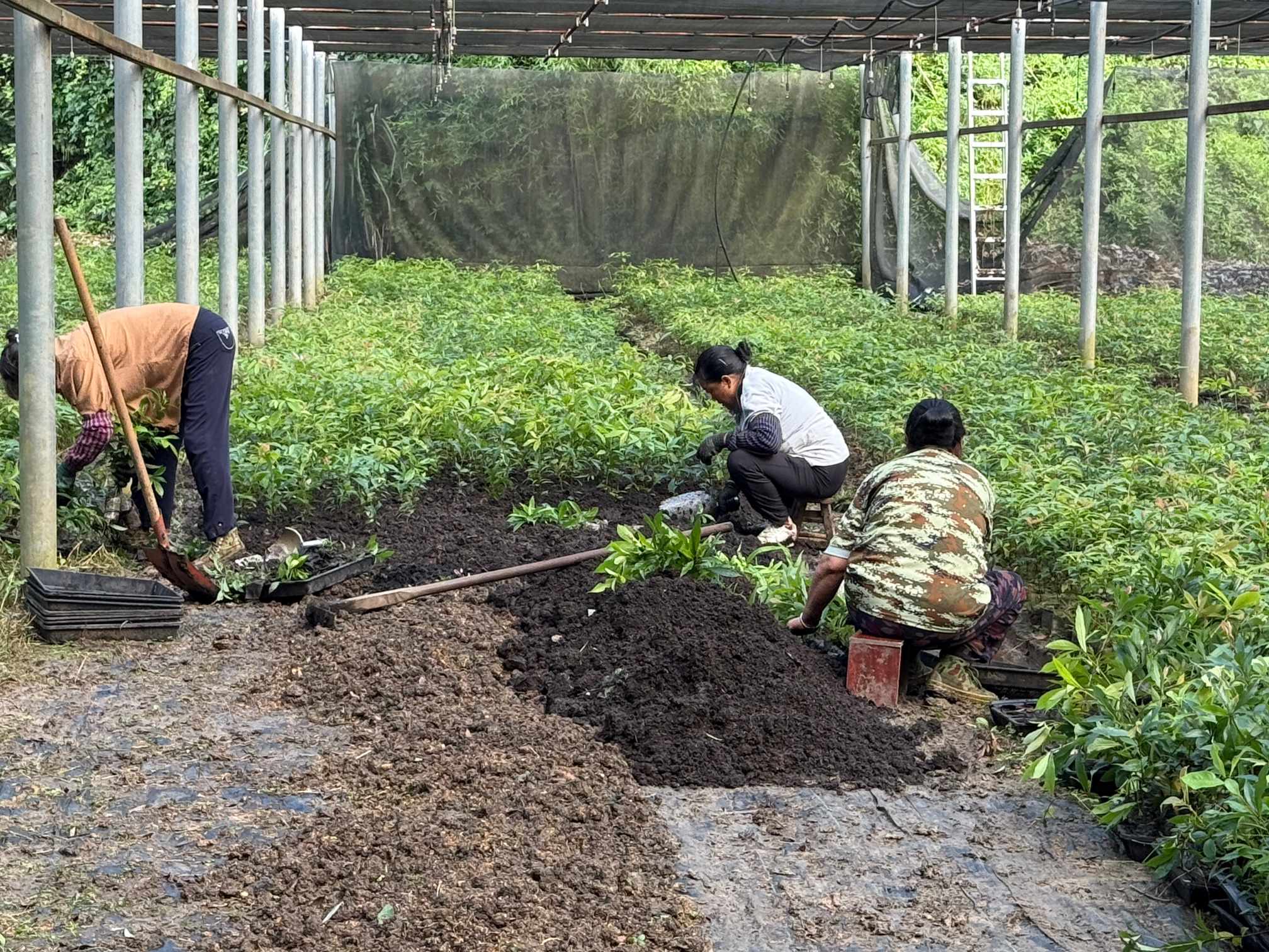 苗圃的农民工作时的场景拍摄)