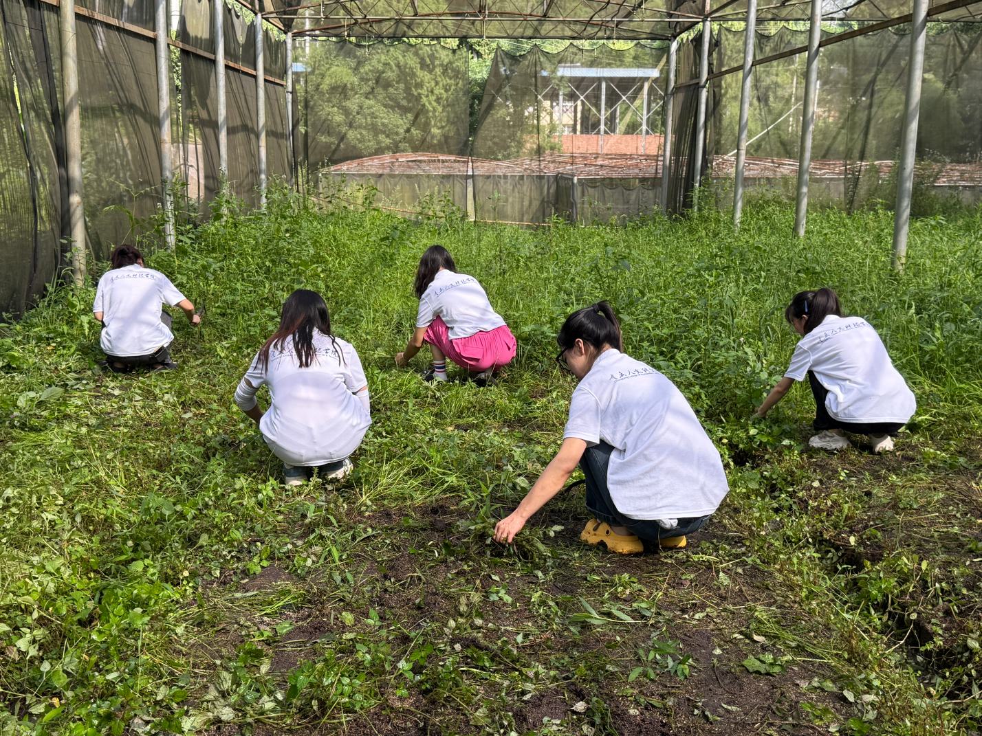 (实践团成员的除草过程)