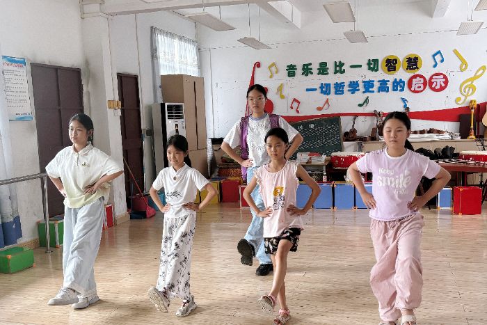 舞蹈课上,圆场步的轻盈与六个八拍动作的活力相映成趣,小学员们虽汗湿衣背却热情不减。在每个同学的脸上都展现出自信的神色。短短两天时间,原本羞涩的孩子们已经能够大方展示自我。音乐与舞蹈的魅力,正在这片充满希望的田野上,播撒下艺术的种子。