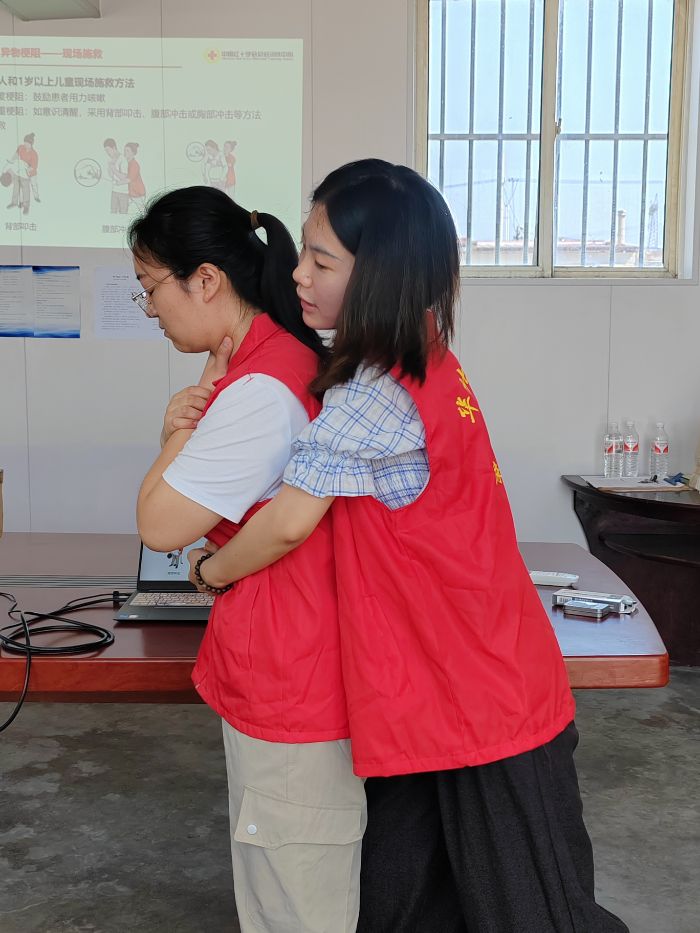义诊间隙,急救知识教学同步展开。志愿者先是用通俗易懂的语言讲解了海姆立克急救法的原理和操作步骤。他们结合生活中可能出现的异物卡喉场景,比如孩子吃东西时不小心噎到、老人吞咽困难等,详细演示了针对不同人群(成人、儿童、婴儿)的操作手法。志愿者们还邀请村民上前进行模拟操作,医护人员在一旁耐心指导,纠正不规范的动作,确保每个人都能掌握这一救命技能。
