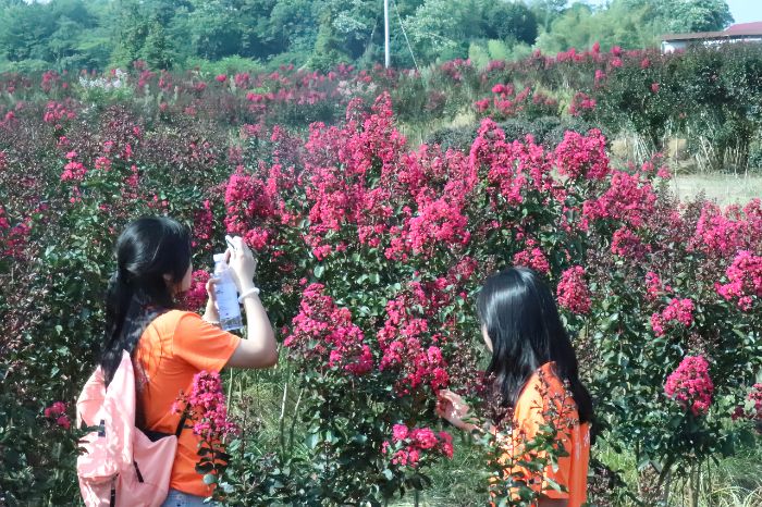 调研中,村干部重点阐述了农旅融合的发展成效:紫薇花基地已成为当地农旅融合的示范项目,通过“紫薇花打卡”等活动吸引了大量游客,直接带动了周边餐饮、民宿等产业的兴起,为村民创造了更多就业岗位和增收渠道。