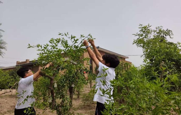 在大田实践环节,成员们来到红枣种植基地,开展去除枣树顶端优势作业,亲身体验了松土、施肥等农事操作。通过修剪优化植株养分分配,提升红枣坐果潜力。同时,学习依据叶片、果实特征识别枣缩果病、桃小食心虫等病虫害,掌握绿色防控手段。成员们将理论知识用于实践,提升专业能力,也体会到科学种植对红枣品质与产量提升的关键作用。