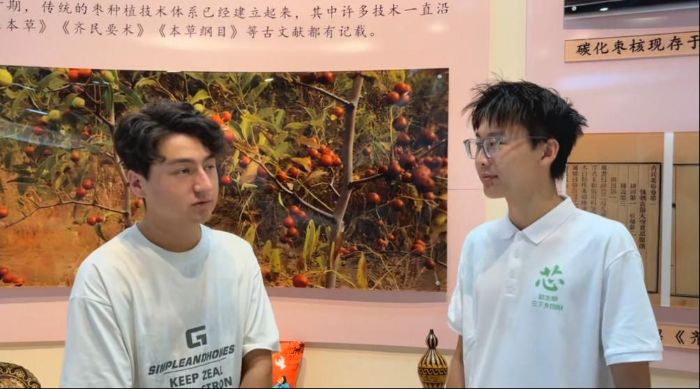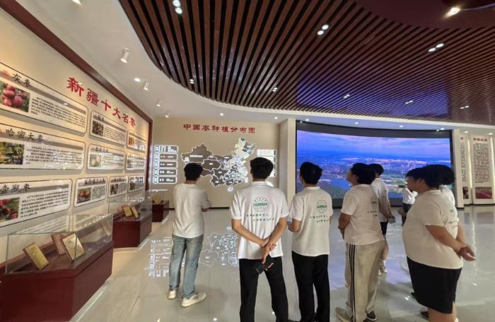 当日,在研究院开热木拉·阿布都艾尼老师的带领下,实践团开启了参观之旅。活动伊始,老师热木拉·阿布都艾尼播放了一段主题宣传片,生动展现麦盖提红枣产业的发展历程、科研成果与品牌价值,让成员们对当地红枣产业的宏伟蓝图有了宏观认知。