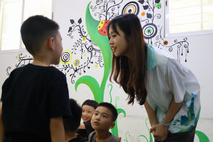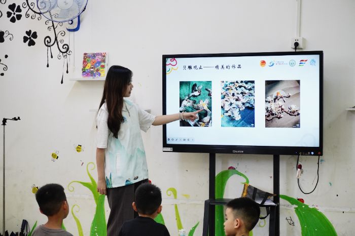 队员们与小朋友们进行课堂互动 雕情贝艺突击队摄