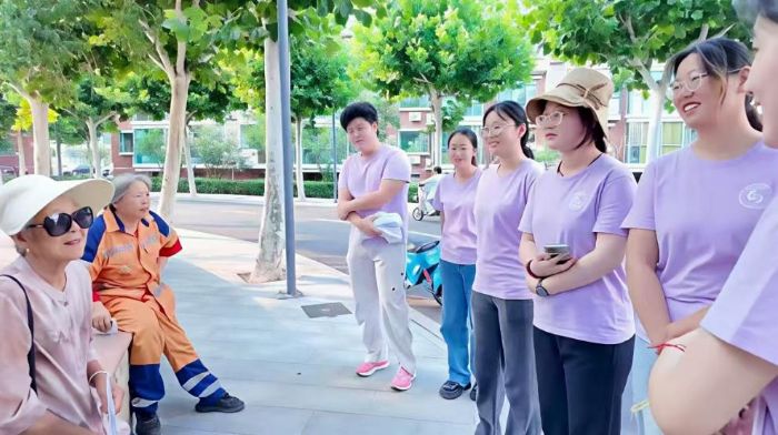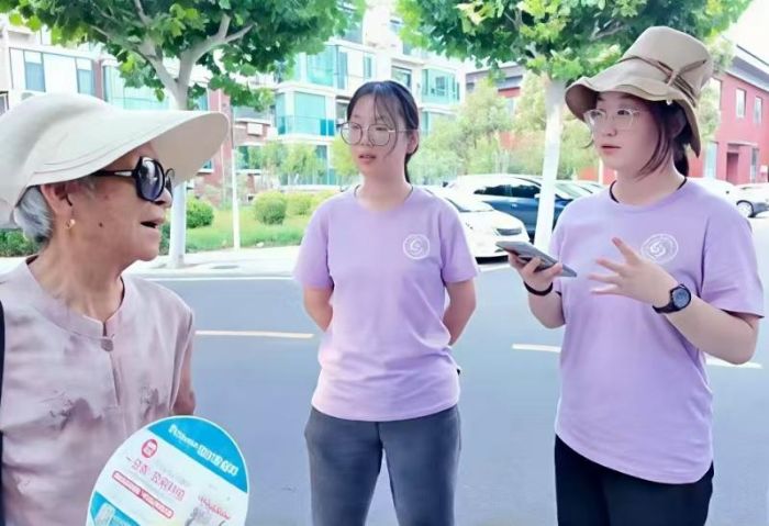 图为荧侦探实践团对社区居民进行调研 闫伟鑫 摄