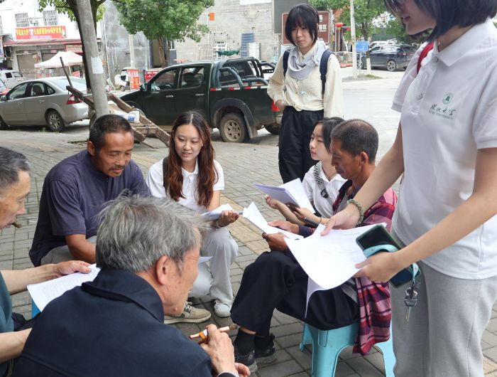 在调研过程中,团队走访了汪营镇齐跃桥村、清源村等6个行政村,累计发放并回收问卷263份。问卷内容涵盖生态环保认知、农业生产行为、生活环保行为等多个维度。团队成员挨家挨户发放问卷,每到一户,成员们都耐心的向村民解释问卷内容,并认真记录村民的反馈、回答。