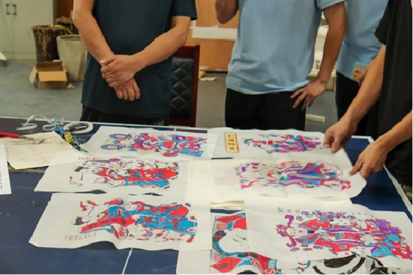 图为汪老师为团队成员介绍年画制作工艺(李宇霖供图)