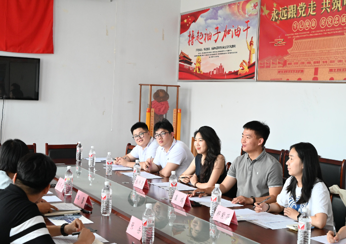 图为实践团成员在北街村村委办公室开展共建座谈会。李忠哲摄