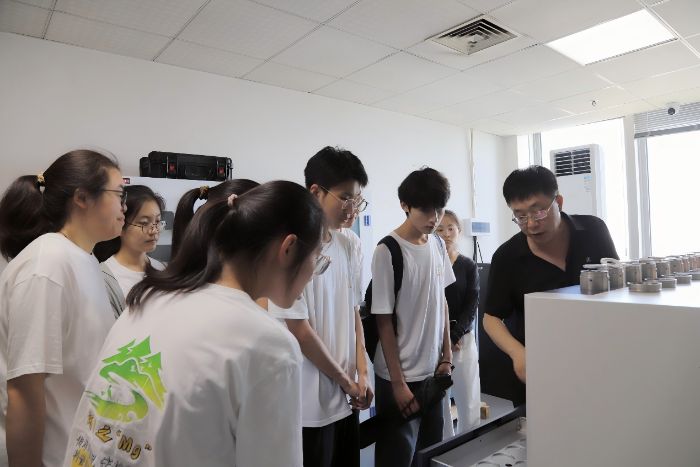 实践团首先参观了企业矿样室,其中包含多种矿石样本,蕴含丰富的有价金属。指导老师介绍,通过系统化的破碎、精细研磨及浮选工艺,矿石中蕴藏的多种有价金属得以有效释放与富集,这为后续高效分离与回收奠定了基础。这一基础物理过程,也为未来处理黄河复杂水体中分散的重金属离子提供了初步分离思路。
