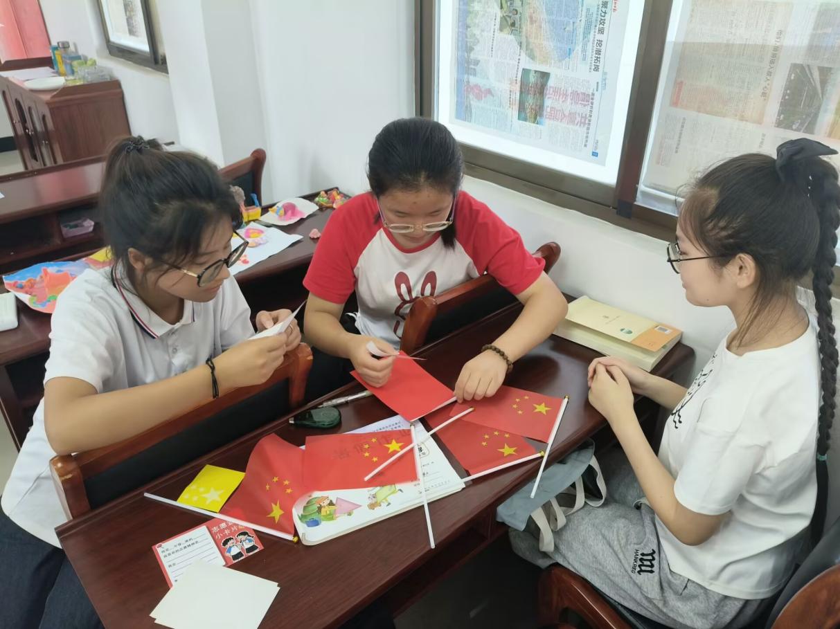 图为实践团成员在教授如何制作小红旗。台可娜 供图
