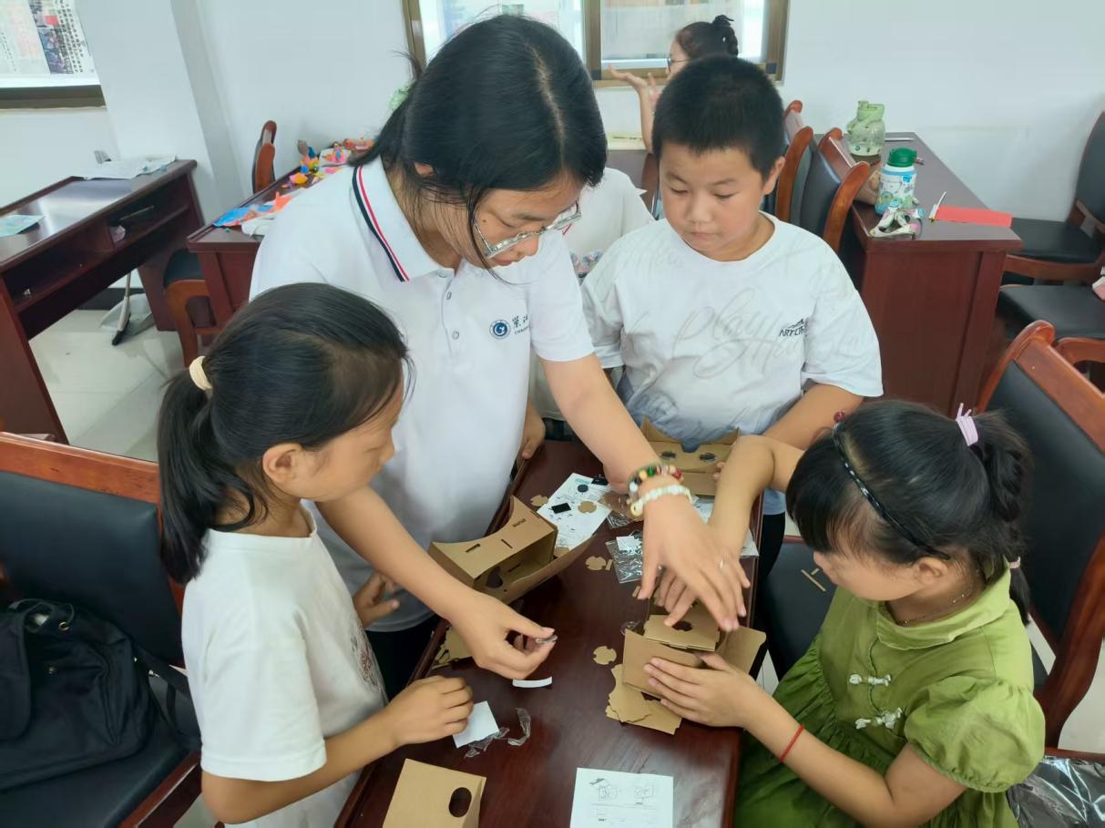图为实践团成员带领制作VR眼镜。台可娜 供图