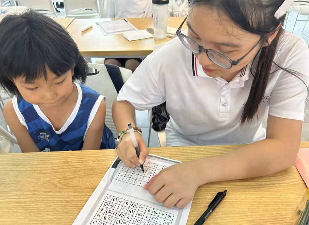 图为实践团成员制作舒尔特方格间。杨扬 供图