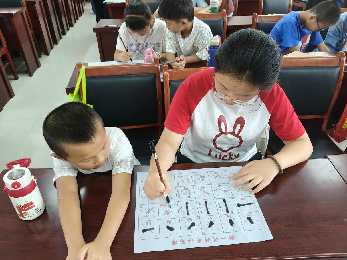 图为孩子们认真书写毛笔字。台可娜 供图