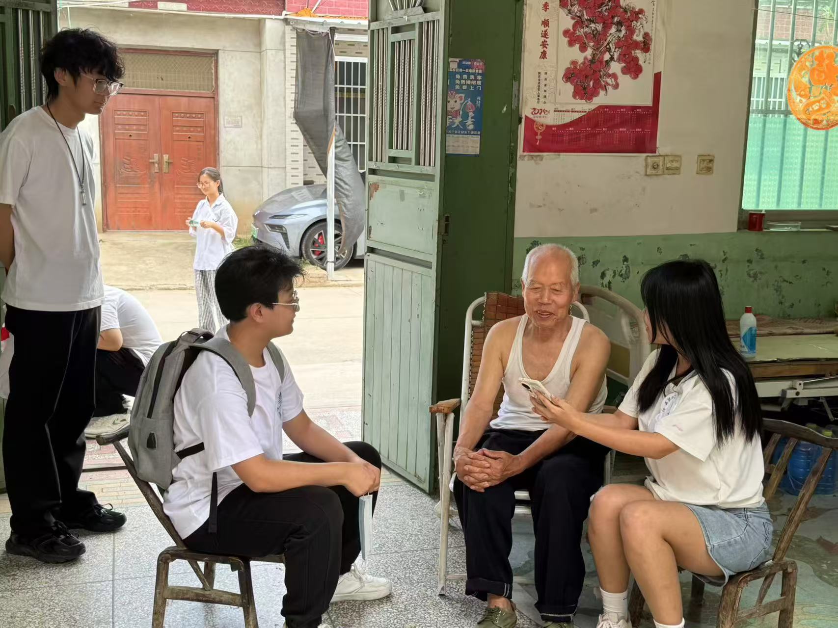 在北牛村、中牛村,实践团队员们化身“银龄辅导员”,一对一、手把手地教老人们使用智能手机,从解锁屏幕、调节音量到添加联系人、发起视频通话,每一步都耐心细致,确保老人们能够掌握基本操作。除了科技服务,实践团还深入独居老人家中,清扫院落、擦拭门窗、整理杂物,用实际行动传递温暖与关怀。同时,队员们兼任“反诈宣传员”,通过面对面交流、案例讲解和发放宣传单页等形式,向村民普及防诈骗知识,增强了老人们的防骗意识。
