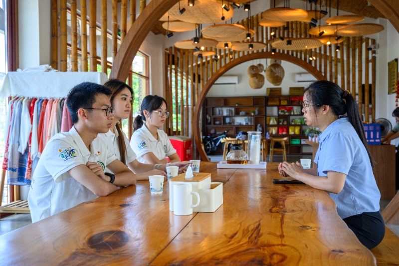 图为队员们与广九豆工坊负责人深入交谈 吴子健摄