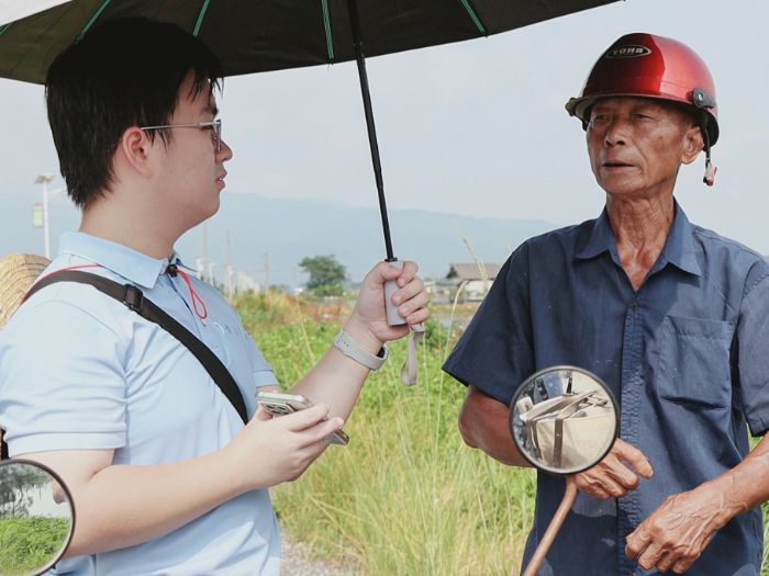 图为肇庆学院“芡”途似锦突击队队员采访当地种植户。黄茹灵供图