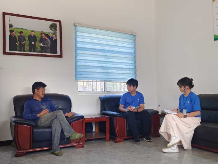下午,团队前往程夕兵农事服务中心采访种粮大户程夕兵。他身着沾泥工作服,以一线生产者视角分析秸秆回收实际问题,提出“提高农民参与度、加大政府技术与政策扶持”等建议,并勉励团队“将专业知识与乡村实践结合,为振兴乡村贡献力量。”