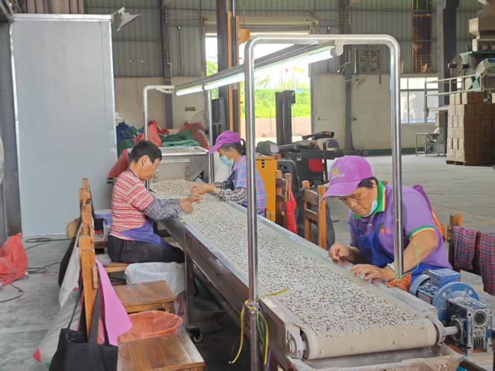 在浦特农业加工厂内,“音”你而来突击队实地调研乡村企业发展现状。加工厂内设施完善、生产有序,但一线员工多为当地老年群体,这一现象引发了突击队队员们的关注。据浦特经理介绍,作为沙浦乡本土企业,公司始终秉持“扎根乡土、服务乡亲”的发展理念,优先吸纳本地群众就业,有效带动100多名村民增收致富。目前,企业主要加工生产具有沙浦特色的优质农产品,如传统特产肇实(芡实)、茯苓、麦冬等,产品凭借优良品质远销全国,推动了沙浦镇特色农业产业化发展。“音”你而来突击队了解到,浦特以“立足沙浦、辐射全国”为战略定位,通过特色农产品深加工延伸产业链,积极探索“企业+乡村”的共赢模式。此次调研为突击队队员深入了解乡村振兴实践提供了鲜活样本,突击队队员纷纷表示,将充分发挥青年力量,助力讲好新时代乡村企业发展故事。