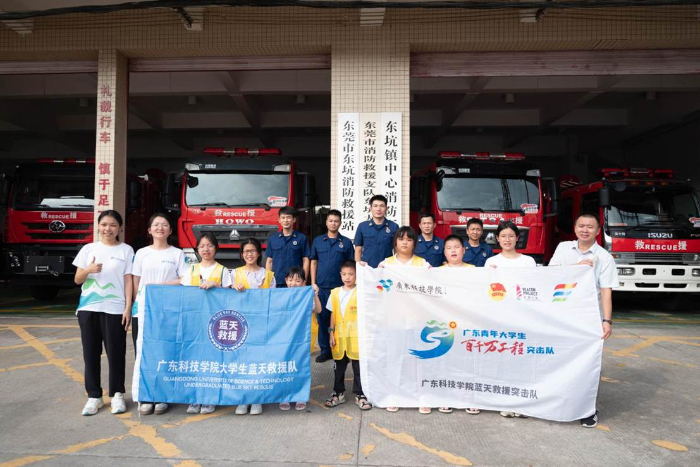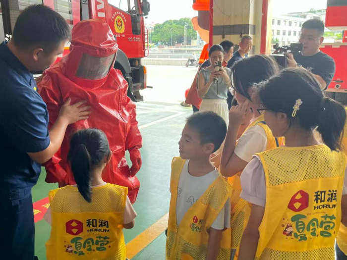 “哇,原来消防车里有这么多秘密武器!”7月17日下午,在东莞市东坑镇消防救援大队营区内,一双双充满求知欲的眼睛紧盯着消防员叔叔手中的装备。广东科技学院蓝天救援突击队带领东莞市东坑镇广东和润新材料股份有限公司的员工子女们来到这里,开启了一场沉浸式的消防安全探索之旅。消防站的丁队长化身“平安讲师”,为孩子们揭开了守护城市安全的“橙色力量”背后的奥秘。