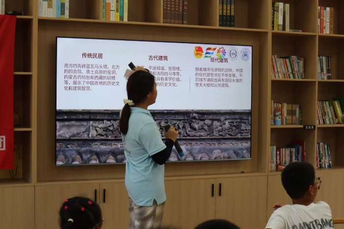 “大家看这张图片,为什么福建土楼要建成圆形?”课堂伊始,实践团成员熊金展示的田螺坑土楼群图片引发好奇。通过对比方形与圆形土楼的结构图,同学们了解到圆楼,四合院以及故宫的特点,以生动案例解读建筑背后的文化内涵。