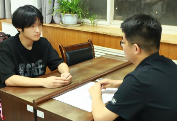 图三 团队成员对郭同学进行采访 杜欣艳 供图