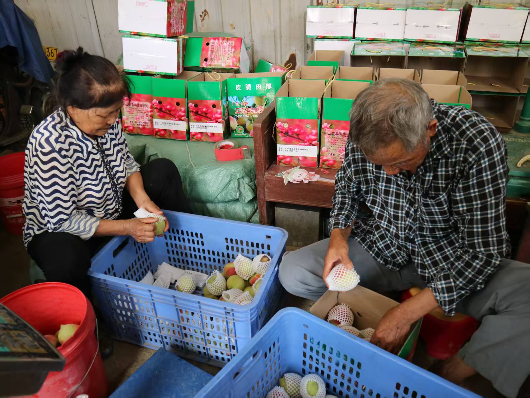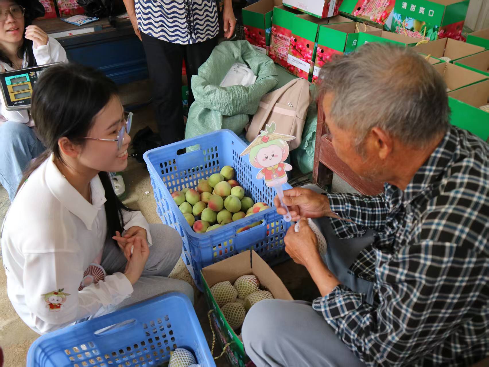 除了品尝与参观,突击队还重点向果农了解了鹰嘴桃从采摘到发货的完整流程。果农们热情地介绍,这里的桃子都是现摘现发——刚从枝头摘下的新鲜果实,会立刻被送去分拣、打包,随后快速装箱发货。每一个环节都追求高效与细致,既最大程度锁住了桃子的“枝头鲜”,也让购买者能尽早尝到这份清甜,收获满满的满意与安心。