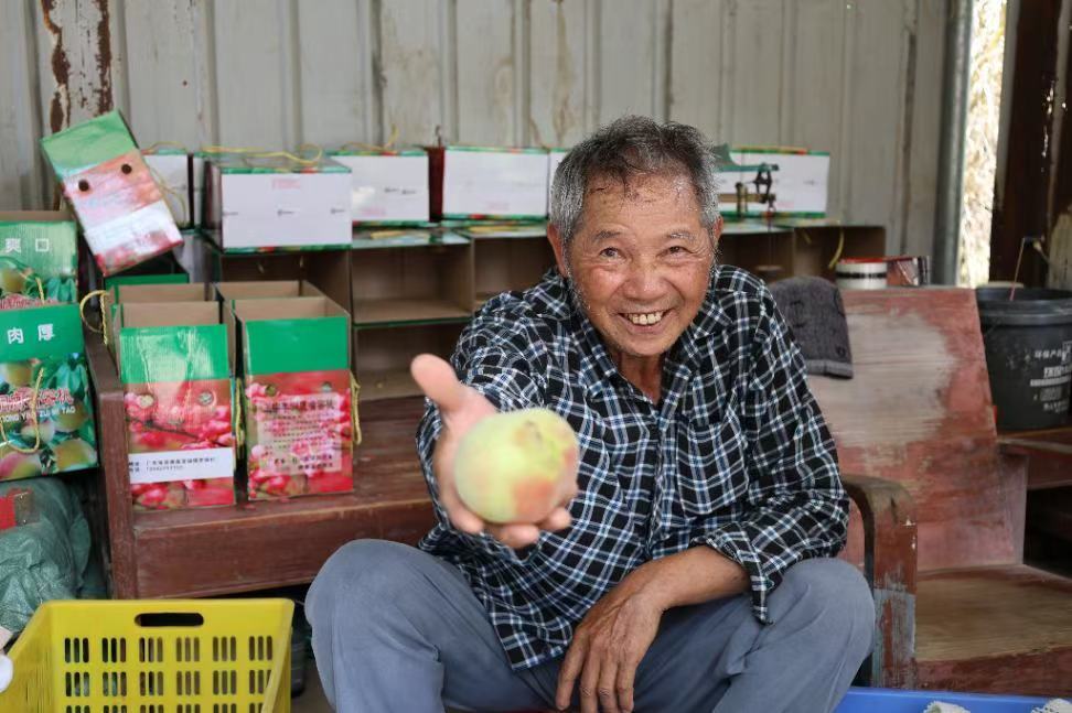 图为果农爷爷展示鹰嘴桃(罗钰婷供图)